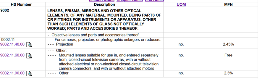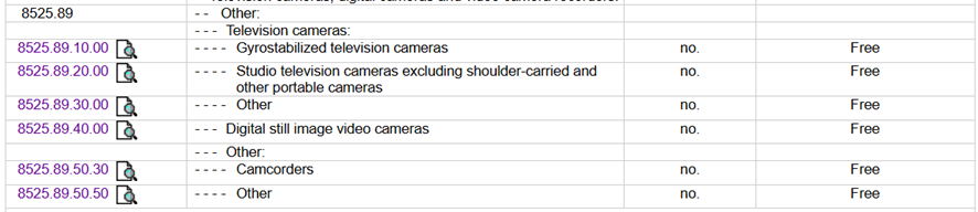 HTSコードは最終的には輸入国税関の判断となるので正確な判定はできませんが、カメラカテゴリーの場合は以下のような税率になると思われます。